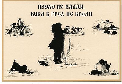 Title (ebay affiliate link): Elizabeth Bem Girl Stealing Fruit Cat Mouse Dog Doll Silhouette Russian postcard