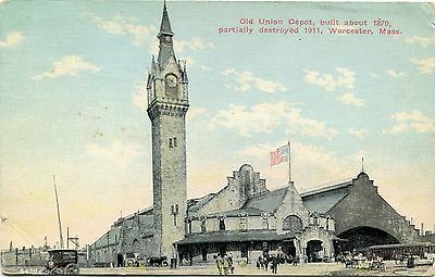 Title (ebay affiliate link): Worcester, MA, Old Union Depot, built about 1870, partially destroyed 1911