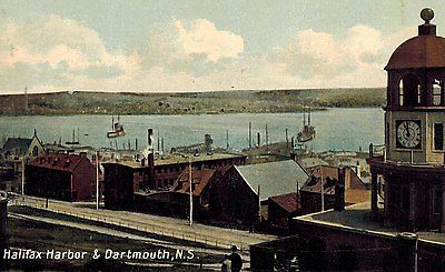 Title (ebay affiliate link): NOVA SCOTIA, HALIFAX HARBOR & DARTMOUTH, TOWN CLOCK, W.E.HEBB, 1908
