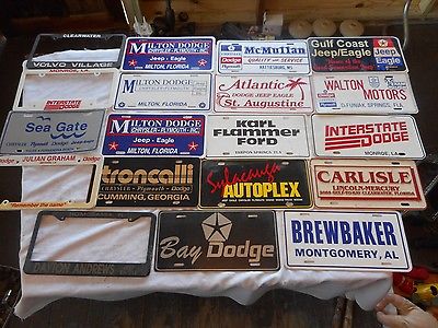 Title (ebay affiliate link): Lot of 19 Vintage Dodge Jeep Ford License Plate Holders Frames Dealership Tags