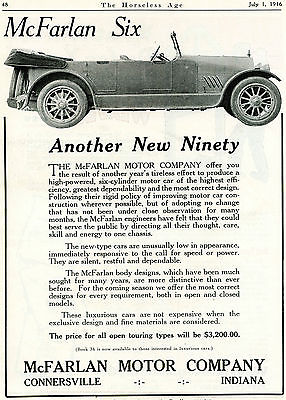 1916 McFARLAN SIX CAR AD McFARLAN MOTOR COMPANY CONNERSVILLE INDIANA