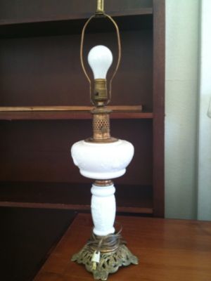 MILK GLASS ANTIQUE LAMPS - 1 PAIR