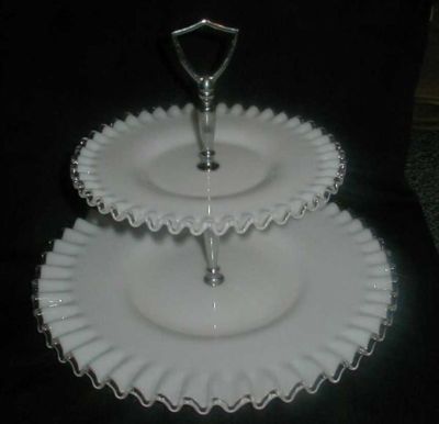 FENTON SILVER CREST MILK GLASS TWO TIER TIDBIT TRAY
