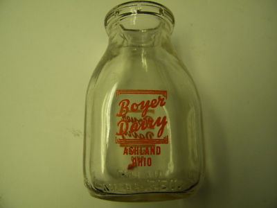 Boyer Dairy, Ashland, Ohio, Half Pint Milk Bottle