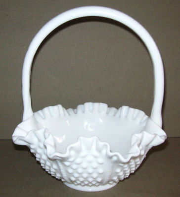 Marked FENTON Hobnail & Rope White Milk Glass Basket