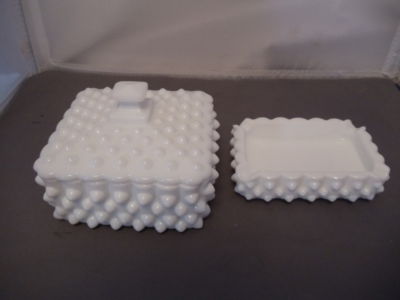 Fenton Hobnail White Milk Glass Ash Tray Cigarette Box