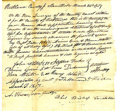 Title (ebay affiliate link): MT HOLLY VERMONT 1817 DOCUMENT TAVERN KEEPERS LICENSED FOR PUBLIC ENTERTAINMENT