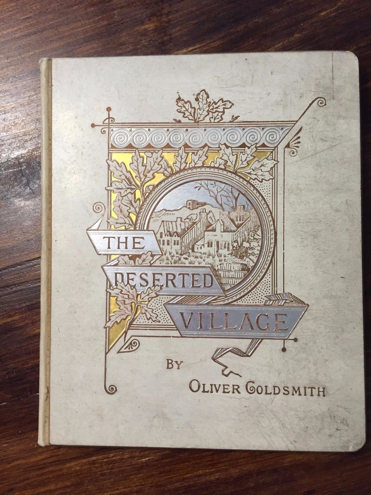 Title (ebay affiliate link): ANTIQUE BOOK ca1880? The Deserted Village by Oliver Goldsmith board bound w/gold