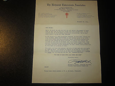 1941 Richmond Virginia Letter Colored Tuberculosis Committee Negro