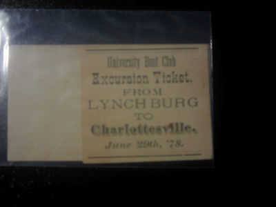 Title (ebay affiliate link): 1878 Ticket University Boat Club Lynchburg to Charlottesville Virginia