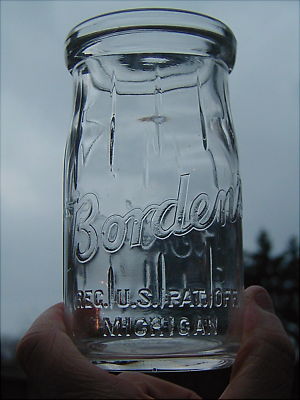 Nice BORDEN'S COTTAGE CHEESE JAR - MICHIGAN MILK BOTTLE