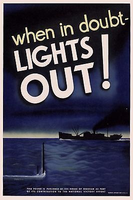 1943 WW2 ii USA AMERICA Lights Out Submarine Ship Battleship Propaganda Postcard