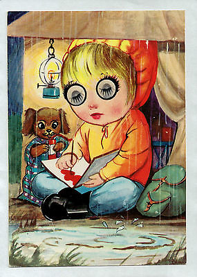 Title (ebay affiliate link): A1122cgt Cute Girl & Dog Camping 3D Lenticular Winking Eyes Kruger postcard