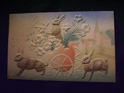 old postcard 1908 Claysville PA Easter bunnies rabbits egg embossed old postcard