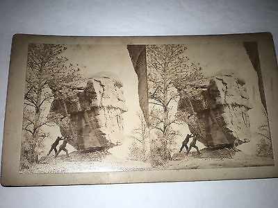 ANTIQUE 1870 - 90 STEREOVIEW CARD/BALANCED ROCK GARDEN OF THE GODS/CO.SPRINGS,CO