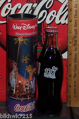2001 DISNEY 100 YEARS OF MAGIC WALT DISNEY WORLD 8 OZ COCA COLA BOTTLE & TUBE