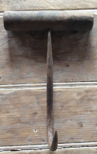 Antique Primitive Cast Iron/Wood Hay Hook Old And Rusty