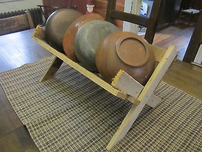 *PriMiTivE*Set Of 4 Old Wooden Painted Bowls & Bowl Holder*EARLY BROWNS*etwalls