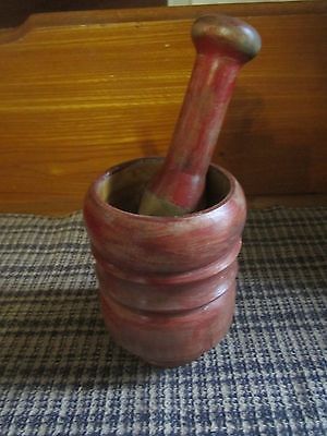 *PriMiTivE*Antique Wooden Painted MORTAR & PESTLE*BARN RED*Great Patina*