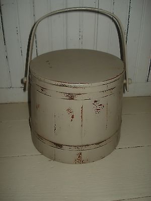 Antique / Vintage PrimitivePainted Wood Firkin Sugar Bucket w/lid - Perfect size