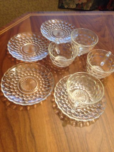 Title (ebay affiliate link): Vintage Anchor Hocking Depression Glass Bubble Glass Cups And Saucer