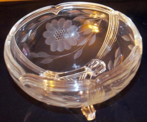 HUGHES CORNFLOWER DEPRESSION GLASS 3 TOED BOWL 5" diameter Mint condition