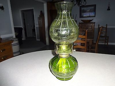 Vintage Green Depression Glass Kerosene Lamp with Globe