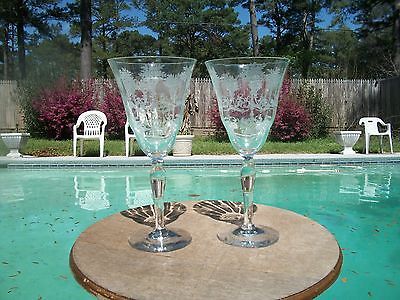 PAIR OF 1930'S DEPRESSION GLASS MORGANTOWN MAYFAIR 7 1/2" WATER GOBLETS