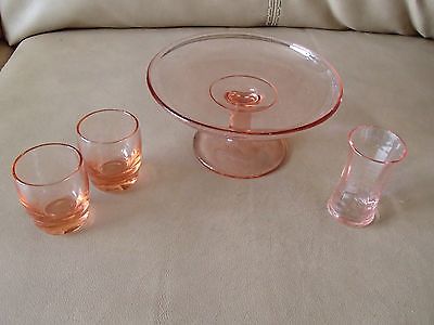 Title (ebay affiliate link): Vintage Pink Depression Glass Candy Dish and Shot Glasses