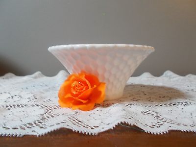 VINTAGE DIAMOND CUT WHITE MILK GLASS BOWL,CANDY DISH