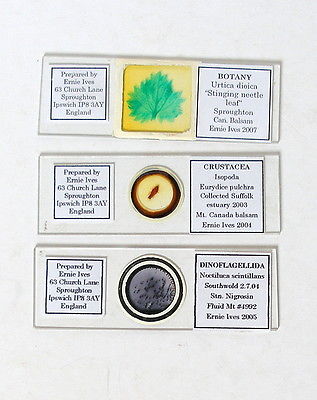 3 x ERNIE IVES Miscellaneous MICROSCOPE SLIDES,