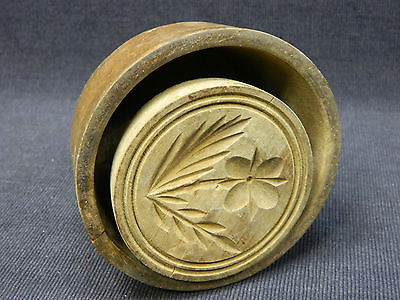 Title (ebay affiliate link): Early Wood Round Butter Press Mold 4-Leaf Clover Authentic Patina Primitive AAFA