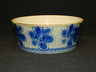 Superb Antique Stoneware Cobalt Blue Flower Decorated Butter Crock Salt Glaze