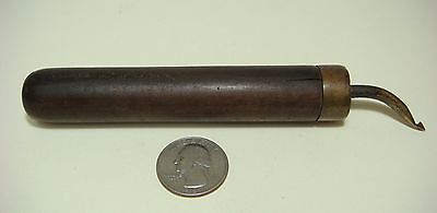 ANTIQUE BRASS & WOOD CURVED HOOK TOOL SEWING, WEAVING, STITCHING, ROPE??