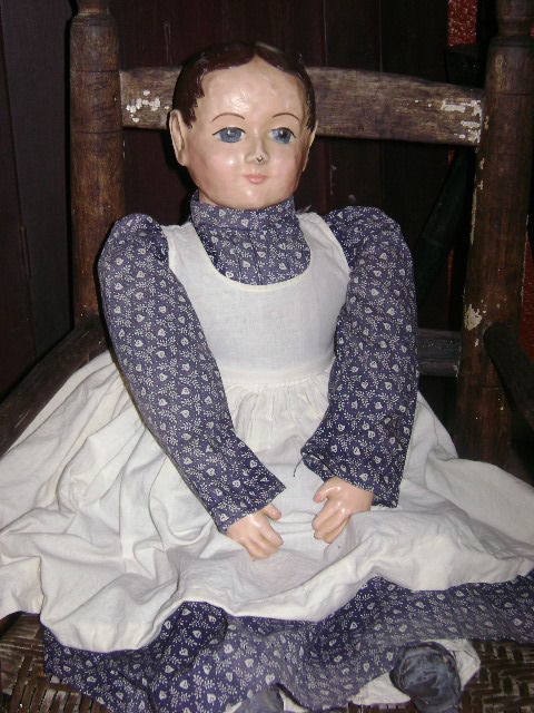 Title (ebay affiliate link): Primitive Folk Art Doll - blue calico dress 21" Martha Chase style