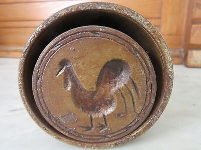 ANTIQUE VINTAGE WOODEN BUTTER MOLD PRESS - ROOSTER! - OLD PAINT