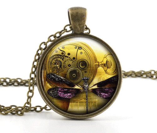 Title (ebay affiliate link): Antique Dragonfly Steampunk Clock Pendant Necklace - Bronze Insect Art Xmas Gift