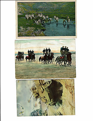 3 Card Military Lot, World War One & Before, Tank in Battle, Horse Trick, Bath!