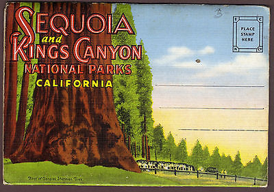 Sequoia & Kings Canyon California 18 view fold-out postcard c.1940's unmailed