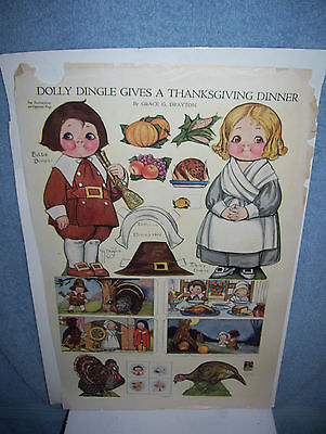 Vintage 1918 Dolly Dingle Gives A Thanksgiving Dinner Paper Doll Uncut