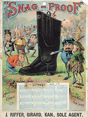 Title (ebay affiliate link): 1896 VICTORIAN TRADE CARD FOR SNAG PROOF RUBBER BOOTS BY J. RIFFER GIRARD KS
