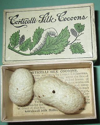 Vintage Box of Two CORTICELLI SILK COCOONS with Information in Box