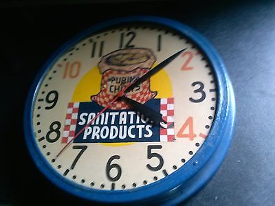 VINTAGE WORKING PURINA SANITATION PRODUCTS CLOCK~WARREN TELECHRON CO.