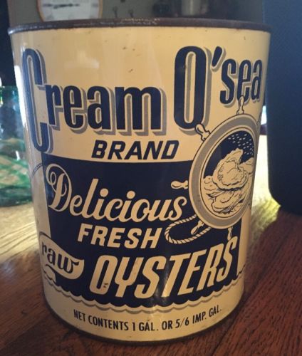 Awesome Vintage Cream O Sea Oyster Tin One Gallon Store Adv. Advertising