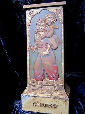 Title (ebay affiliate link): ANTIQUE ENGLISH FIGURAL BISCUIT TIN "CHUMS" EMBOSSED WILLIAM CRAWFORD AND SONS