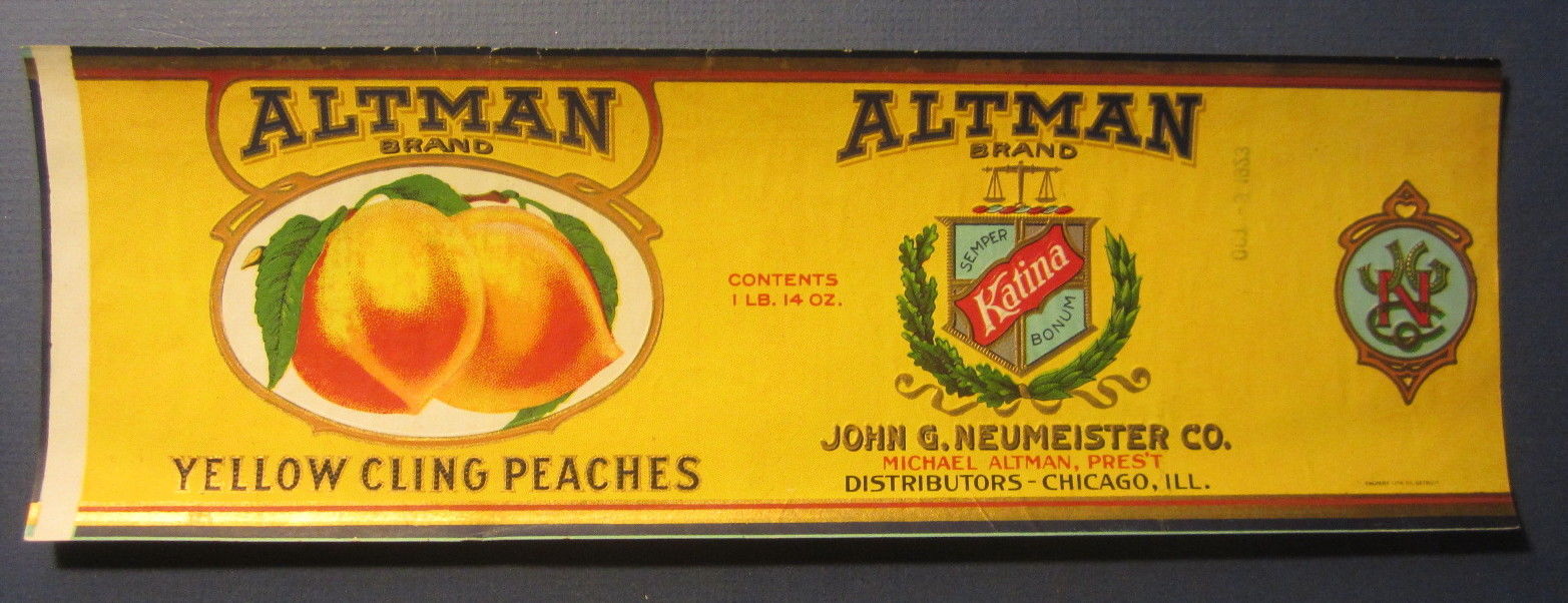 Title (ebay affiliate link): Old Vintage 1923 - ALTMAN Yellow Cling Peaches Can LABEL - Neumeister - CALVERT