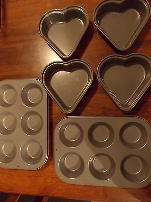 Title (ebay affiliate link): VINTAGE LOT OF 6 MINI/TOY METAL BAKING PANS HEART SHAPE/MUFFIN PANS