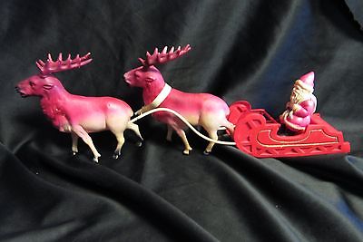 Vintage Celluloid Santa Claus Reindeer and Sleigh