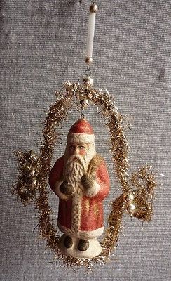 VTG.PAPIER SANTA CHRISTMAS TREE ORNAMENT IN TINSEL ROUND
