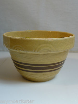 Vtg RRPCO Robinson Ransbottom Roseville Yellow Ware Brown Band Mix Bowl Stripe